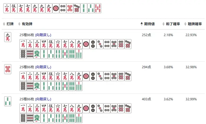 麻雀は「運のゲーム」と言われますが、長期的に勝ち越すためには「確率の高い選択」を積み重ねる以外に道はありません。(短期的には運もありますが、長期的には実力がものを言います。)