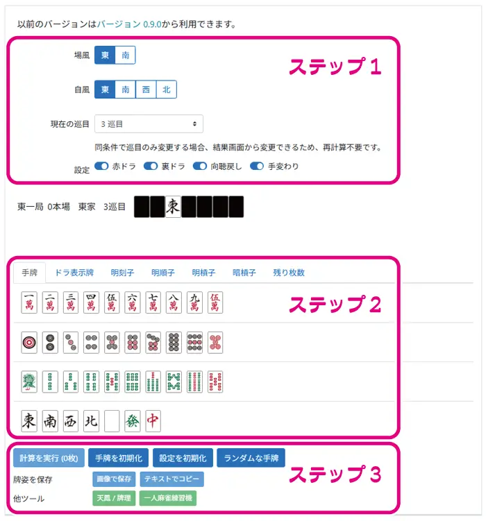 手牌・ドラ・巡目を入力するだけ!解析スタートまでの3ステップ