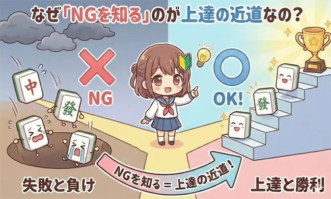 初心者は「高い手を作ること」や「派手なアガリ」を目指しがちですが、上級者は「無駄な失点をしないこと」を最優先します。麻雀は加点法であると同時に、ミスの数を競う減点法のような側面も持っています。頭悪いと揶揄されるような無謀な放銃や、確率的に損な選択肢(NG行動)を排除するだけで、特別な技術を覚えなくても勝率は自然と安定し始めます。
