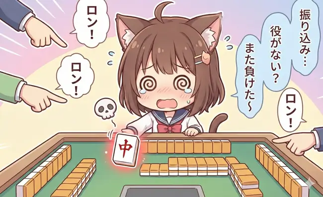初心者が最も陥りやすいミス、それは「放銃(ロンされること)」の多さです。自分の手が揃ってきたからといって、相手のリーチやドラのポンに対して無警戒に危険な牌を切っていませんか? 麻雀において、放銃は最大の失点原因です。「自分があがりたい」という気持ちが先行し、引くべき場面でも無理に攻めてしまうことが、勝率を下げる最大の要因となっています。