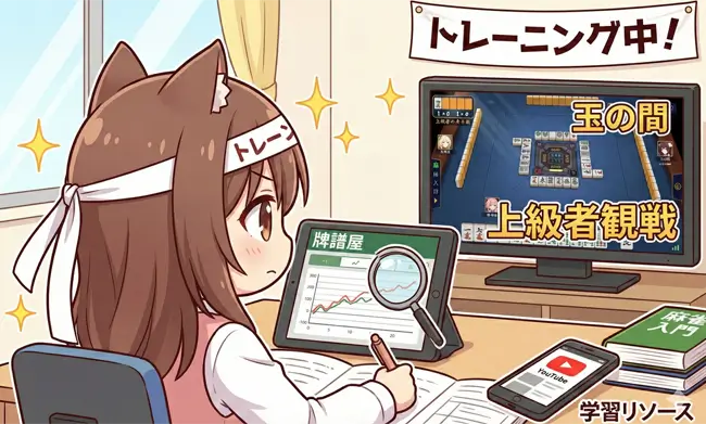 現在はYouTubeや書籍で質の高い麻雀講座が手に入ります。特に「Mリーグ」などのプロ対局を見るのも良い刺激になりますが、初心者向けの解説動画を見るほうが即効性は高いでしょう。 また、「何を切るのが正解かわからない」という時は、平面的な牌効率を学べる練習アプリや、一人でじっくり考えられるCPU戦を活用して、牌理(はいり)の基礎を固めるのもおすすめです。