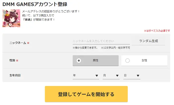 DMM GAMESアカウント登録してゲームを開始