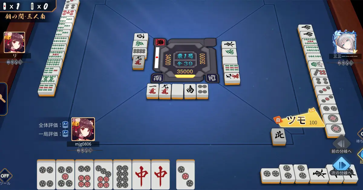 大人気オンライン麻雀ゲーム天鳳でいうと、三段あたりをうろうろしています。おそらく天鳳の三段は初心者から中級者の間くらいの腕前になるのではないでしょうか?